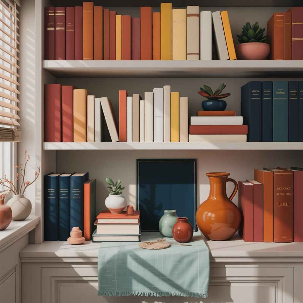 Group books and objects by color to create visual rhythm without chaos. Start with a base palette (like earthy terracottas or serene blues), then layer shades from dark to light. Place a deep navy coffee table book beside a ceramic vase in matching hues, then add a light aqua linen runner beneath. This technique—used by top stylists—creates instant cohesion.